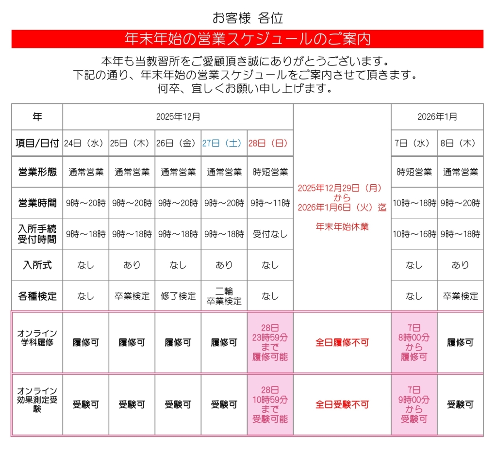 平素は当教習所をご愛顧頂き誠にありがとうございます。